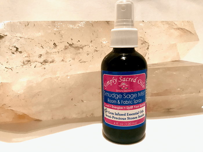 Simply Sacred’s Smudge Sage Mist™ Room & Fabric Spray; Use this spray the same way you would when you are smudging with the plant. As you spray, focus your intention on releasing stagnant energies so they can be recycled back into the earth. Spray high into the air above and around the area or environment you choose to clear, creating your sacred space.