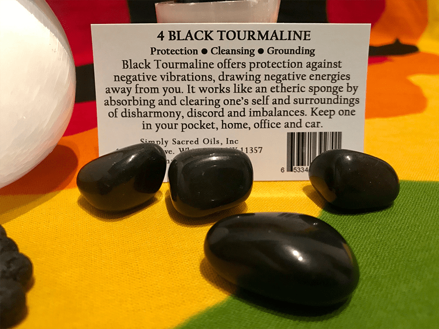 Black Tourmaline is black in color and is used for protection and the clearing of electromagnetic energy we encounter from electronics such as computers, phones, etc. It aids with grounding and works as a shield from other people’s energy—the four corners of protection.