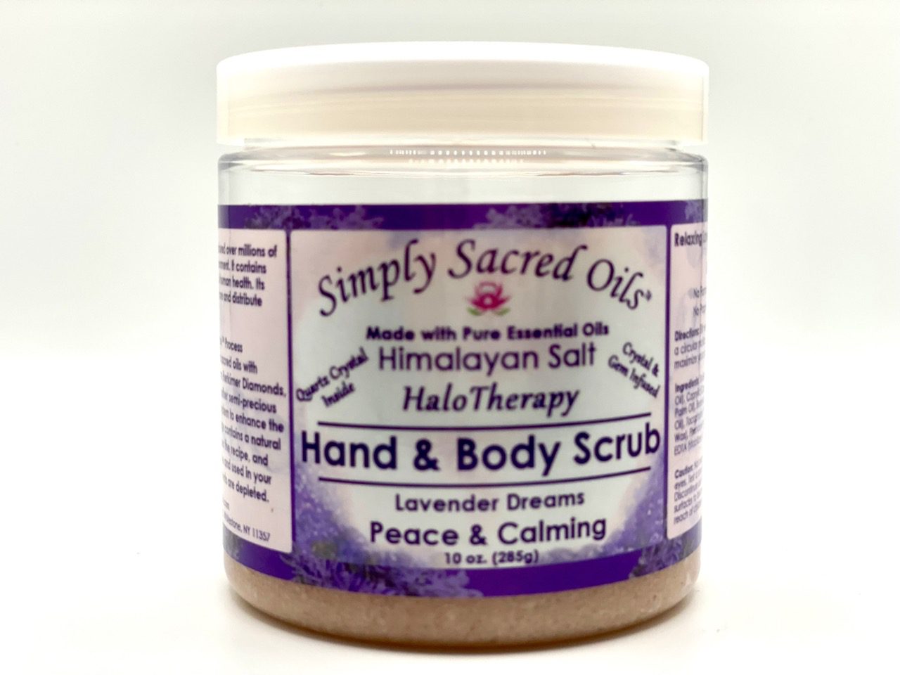 Relaxing Lavender Pure Essential Oil with Beeswax, Jojoba Oil, Rice Bran Oil & Fractionated Coconut Oil with other natural ingredients. Genuine Quartz Crystal Inside.
