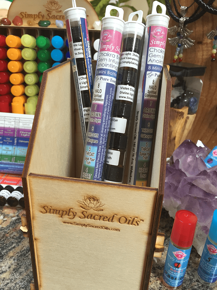 We have developed eight chakra-specific formulas that will work with you to bring about your chosen results. Applied to the appropriate area or chakra energy center, the oils become the vehicle that unlocks cellular memory, the blueprint for your existence. The complete kit allows you to access and strengthen the emotional, cellular, and spiritual connection, creating balance and harmony in your life.